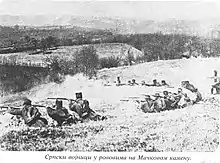 7 September brought a renewed Austro-Hungarian attack from the west, across the Drina river, this time with both the Fifth Army in Mačva as well as the Sixth further south.[20] Though the initial attack by the Fifth Army was repelled by the Serbian Second Army, with 4,000 Austro-Hungarian casualties, the stronger Sixth Army managed to surprise the Serbian Third Army and gain a foothold. After some units from the Serbian Second Army were sent to bolster the Third, the Austro-Hungarian Fifth Army established a bridgehead with a renewed attack. At that time, Marshal Putnik withdrew the First Army from Syrmia (against strong opposition), using it to deliver a fierce counterattack against the Sixth Army that initially went well but finally bogged down in a bloody four-day fight for a peak of the Jagodnja mountain called Mačkov Kamen, in which both sides suffered horrendous losses in successive frontal attacks and counterattacks. Two Serbian divisions lost around 11,000 men, while Austro-Hungarian losses were probably comparable.