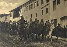 Yakova (present-day Đakovica or Gjakova) was mentioned among the cities that suffered at the hands of the Serbian-Montenegrin army. The New York Times reported that people on the gallows hung on both sides of the road, and that the way to Yakova became a "gallows alley."[26] In the region of Yakova, the Montenegrin police-military formation Kraljevski žandarmerijski kor, known as krilaši, committed many abuses and violence against the Albanian population.[28]