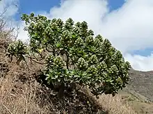 The park features about 124 species of plants, of which 28 are endemic species or subspecies.[5] The endemic plants are threatened by invasive species from outside the park including Lantana camara (lantana) and Furcraea foetida (giant cabuya). Limonium lobinii (carqueja de Santiago) is only found in this park.[5]