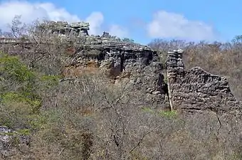 The park is in the Caatinga biome.[2] There are rainforest trees in the lower areas reaching 20 metres (66 ft) in height. Higher up the trees average about 6 metres (20 ft). The wetter valleys hold bromeliads and ferns with occasional giant trees.[1]