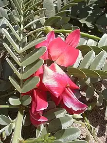 Sesbania tomentosa, commonly known as Oahu riverhemp[3] and ʻōhai, is an endangered species of plant in the pea family, Fabaceae, that is endemic to the main Hawaiian Islands as well as Nihoa and Necker Island. It inhabits low shrublands and, rarely, dry forests,[4] at elevations from sea level to 2,500 ft (760 m).[5] Associated native plant species include akiʻaki (Sporobolus virginicus), ilima (Sida fallax), naupaka kahakai (Scaevola taccada), and pili (Heteropogon contortus).[1] Off-road vehicles, wildfires, grazing, and alien species competition have destroyed their habitat on the main islands, but they are still quite common on Nihoa and Necker. At least 2000 specimens grow on Nihoa, while there are far less on Necker.
