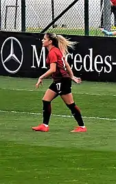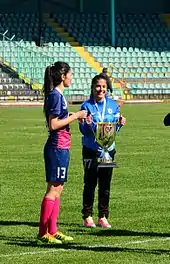 At the end of the 2015–16 season, she enjoyed her team's champion title.[8] She played in three matches of the Group 9 of the 2016–17 UEFA Women's Champions League qualifying round.[9][10][11] Following the play-off round, the 2016–17 season ended for her team as the champion fifth time in a row,[12] and she became "top scorer" for the second time.[13]