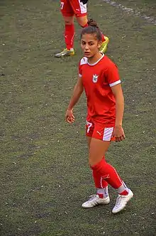 She was transferred by the 2018–19 Women's First League champion Beşiktaş J.K. to play in the 2019–20 UEFA Women's Champions League – Group 9 matches.[17][18] She scored one goal against the Armenian Alashkert.[19] She could not play in the entire 2020-21 Turkcell Women's Football League season due to a cruciate ligament rupture on her left leg, she contracted during a national team camp before the beginning of the regular league season.[20][21] She underwent a surgery late January 2021.[21] Recovering from her injury, she appeared in a friendly match before the beginning of the 2021–22 Super League season.[20] In December 2021, before the beginning of the 2021–22 Women's Super League, she underwent a surgery on her keft knee due to the repeated anterior cruciate ligament injury.[22]