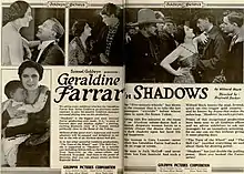 Shadows is a 1919 American silent film drama produced by Samuel Goldwyn and directed by Reginald Barker. It stars opera singer Geraldine Farrar.[1]
