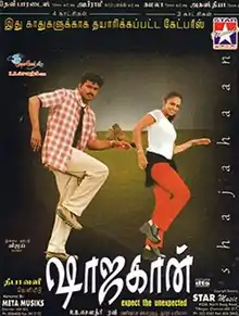 Shahjahan ( transl: King of the World ) is a 2001 Indian Tamil-language romantic film written and directed by Ravi Abbulu making his directorial debut and produced by R. B. Choudary. The film stars Vijay, Richa Pallod (in her Tamil debut) and Krishna in the lead roles while Vivek and Kovai Sarala portray supporting roles. The film, which had music was composed by Mani Sharma, was released on 14 November 2001. The story is about the love life of a love doctor and how his love life ends in a tragedy unknowingly. The film was a commercial success.[1][2]
