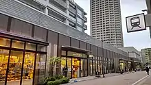 An extensive commercial and housing area called "Eminade Shakujii-kōen" is expected to be completed by fiscal year 2015. Opening in three stages, the first stage of this project was opened on October 2, 2013, as "Emio Shakujii-kōen" at a cost of ¥900 million. Located largely towards the west exit and in close proximity to the station complex, it saw the opening of nineteen stores including a café, a general store, and the supermarket Ito Yokado.[13][14] The second stage of the project, "Emio Shakujii-kōen East" is expected to be completed on August 21, 2014. This stage will see the opening of six stores comprising two fashion establishments (Muji and Buona Vita), an opticians and three catering establishments. Sections of the second stage comprising a daycare center, a pharmacist and a pet-care center were opened prior to the main section over the course of 2014.[15]