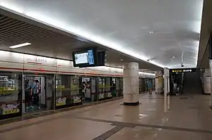 Shanghai Indoor Stadium (simplified Chinese: 上海体育馆; traditional Chinese: 上海體育館; pinyin: Shànghǎi Tǐyùguǎn) is an interchange station between lines 1 and 4 of the Shanghai Metro.[1] This station is part of the initial southern section of the line that opened on 28 May 1993[2][3] and is located in Xuhui District; the interchange with Line 4 opened on 31 December 2005.[4]