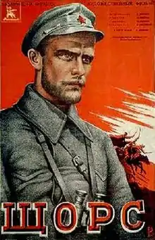 Shchors (Russian: Щорс) is a 1939 Soviet biopic film directed by Oleksandr Dovzhenko and Yuliya Solntseva. Commissioned by Joseph Stalin,[1] the film is a biography of the partisan leader and Ukrainian Bolshevik Nikolai Shchors.[2] Shchors is played by Yevgeny Samoylov (1912–2006).