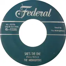 "She's the One" is a rhythm and blues song written by Hank Ballard and first recorded by his group The Midnighters. Originally issued on Federal Records as the B-side of their #1 R&B hit "Annie Had a Baby", it received an A-side release (Federal 12205) later the same year.