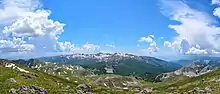 Shebenik National Park (Albanian: Parku Kombëtar i Shebenikut) is a national park in eastern Albania adjacent to the border with North Macedonia. It encompasses 34,507.9 hectares (345.079 km2) and is specifically marked by a mountainous landscape supplied with glacial lakes, valleys, dense coniferous and deciduous forests and alpine meadows and pastures.[2] Elevations in the park vary from 300 metres to over 2,200 metres above the Adriatic at the peak of Shebenik and Jabllanica, hence the name. It dwells a number of endangered species that are fast becoming rare in Southern Europe, including the brown bear, gray wolf and balkan lynx.[3][4][5] The abundance in wildlife can in part be explained by the variety of vegetation types and remote location.