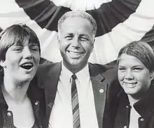 ![]() Chavoor center, with his '68 triple gold medalists Sue Pedersen (left) and Debbie Meyer (right), 1967 | |