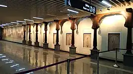 The station contains 5 lifts, 12 escalators and a tunnel ventilation system. Its exterior is inspired by a fort from the era of Shivaji Maharaj, whereas the interior features elements from the Peshwa era. Two subways have been proposed to connect the metro station with Shivajinagar railway station and University Road.[3][4] The work on Line 3 from Shivajinagar to Hinjewadi is being executed under a public–private partnership model with Tata Group and Siemens.[5] It is expected to be fully operational from April 2025.[6]