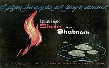 Shola Aur Shabnam (English: Fire and Dew) is a 1961 Bollywood romance film written and directed by Ramesh Saigal. It stars Dharmendra, Tarla Mehta, Abhi Bhattacharya, Vijayalakshmi and M. Rajan in pivotal roles. It was one of the very early films of Dharmendra. The film is about a young man torn between love for his long lost childhood sweetheart, and devotion towards a friend who has helped set him up in his career. The film features music by Khayyam. The original soundtrack contains some of the most famous songs, like "Jane Kya Dhoondti Rahti" etc.
