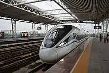 Shunde railway station (Chinese: 顺德站) is an elevated station of Guangzhou-Zhuhai Intercity Railway.[1] The station is located at the east of Bigui Lu (Chinese: 碧桂路) and the west of Longzhou Lu (Chinese: 龙洲路) across Sanchongzhou Channel (Chinese: 三涌洲水道) in Daliang, Shunde District, Foshan, Guangdong, China, which is the center of Shunde District. It started operations on 7 January 2011.[2][3]
