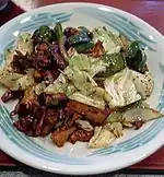 | Kung Pao chicken | ![]() | 宮保雞丁 | 宫保鸡丁 | gōngbǎo jīdīng | Beef or lamb can be substituted for the chicken. |