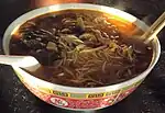| Hot and sour noodle soup | ![]() | 酸辣肉絲湯麵 | 酸辣肉丝汤面 | suān là ròu sī tāngmiàn | Noodle soup dish primarily made with the ingredients of brassica juncea, stir-fried shredded meat, noodle, and broth. |