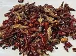 Other examples of mixed flavor including spicy and hot (Mala), fish flavor (Yuxiang), hot and sour, the five spices (Wuxiang; 五香), ginger juice, mashed garlic, sweet and sour, spice salt (Jiaoyan; 椒盐), dried tangerine or orange peel (Chenpi; 陈皮), burnt chili, pot-stewed fowl (Lu; 卤味), odd flavor (Guaiwei; 怪味), and other recombinations of these seasonings.[8]