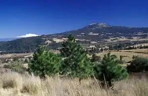 The Sierra Chichinautzin, formed primarily of overlapping small cinder cones and shield volcanoes, creates a broad topographic barrier at the southern end of the Basin of Mexico that extends from the eastern flank of Nevado de Toluca to the western flank of Iztaccihuatl volcano. The volcanic field contains more than 220 Pleistocene-to-Holocene monogenetic vents.[2]