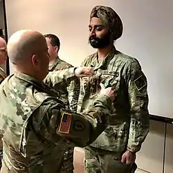 In January 2017, following the outcome of a lawsuit under the Religious Freedom Restoration Act, regulations were changed, allowing for the wearing of beards and turbans by religious individuals (the same ruling also allowed the wearing of burkas and hijabs by Muslims). The ruling does stipulate that the regulations can require that the beards must be worn at certain lengths (via rolling and clipping) and must not interfere with operations.[23] Second Lieutenant Kanwar Singh became the first Sikh service-member to complete US Army's Officer Candidate School under the new military policy. He completed Basic Combat Training (Fort Jackson - 2016), Officer Candidate School (Massachusetts, Connecticut and Alabama - 2018) and Signal Basic Officer Leaders Course (Fort Gordon - 2020) with unshorn hair, beard, and turban. He currently serves as a commissioned officer in the Massachusetts National Guard (US Army Signal Corps).[24]