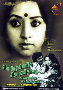 Sila Nerangalil Sila Manithargal (transl.Some people at some moments) is a 1977 Indian Tamil-language romantic drama film directed by A. Bhimsingh and written by Jayakanthan. Based on Jayakanthan's novel of the same name, it stars Lakshmi and Srikanth, with C. K. Nagesh, Y. G. Parthasarathy, R. Neelakantan, Sukumari and S. Sundari Bai in supporting roles. The film revolves around a girl from an orthodox family whose life changes after a one-night stand.