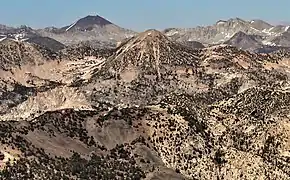 Silver Peak is an 11,878-foot-elevation (3,620 meter) mountain summit located in the Sierra Nevada mountain range in Fresno County, California, United States.[1] It is set in the John Muir Wilderness, on land managed by Sierra National Forest. Silver Peak ranks as the 455th-highest summit in California,[4] and topographic relief is significant as the east aspect rises nearly 2,300 feet (700 meters) above Beetlebug Lake in approximately one mile. It is six miles (9.7 km) north of Lake Thomas A Edison, and approximately 12 miles (19 km) south of the community of Mammoth Lakes. The peak is situated on Silver Divide, two miles northwest of Graveyard Peak. The first ascent of the summit was made prior to 1937 by an unknown party.[5] Inclusion on the Sierra Peaks Section peakbagging list generates climbing interest.