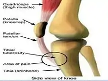 Sinding-Larsen and Johansson syndrome,[1] named after Swedish surgeon Sven Christian Johansson (1880-1959),[2] and Christian Magnus Falsen Sinding-Larsen (1866-1930),[3] a Norwegian physician, is apophysitis of the inferior pole of the patella. It is analogous to Osgood–Schlatter disease which involves the upper margin of the tibia. This variant was discovered in 1908, during a winter indoor Olympic qualifier event in Scandinavia. Sever's disease is a similar condition affecting the heel.