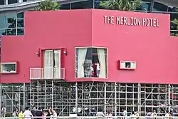 Tatzu Nishi's Merlion Hotel at the Singapore Biennale 2011, a temporary hotel built around the iconic Merlion statue