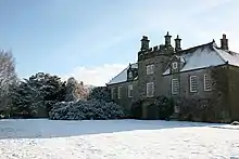 King James sent Foulis to Sir Robert Cecil after he received news of the death of Queen Elizabeth I from Sir Robert Carey.[38] Foulis came to England with King James in 1603; was knighted 13 May of that year; was created honorary M.A. at Oxford 30 August 1605; and was naturalised by act of parliament in April 1606. He obtained with Lord Sheffield and others in 1607 a patent for making alum in Yorkshire; purchased the manors of Ingleby and Battersby from Ralph, Lord Eure, in 1609; and was made a baronet of England 6 February 1619–20. He acted as cofferer to both Prince Henry and Prince Charles.[39]