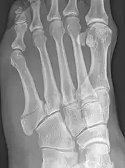 Jones fracture of the 5th metatarsal of the foot, between the epiphysis (base) and the diaphysis (shaft).