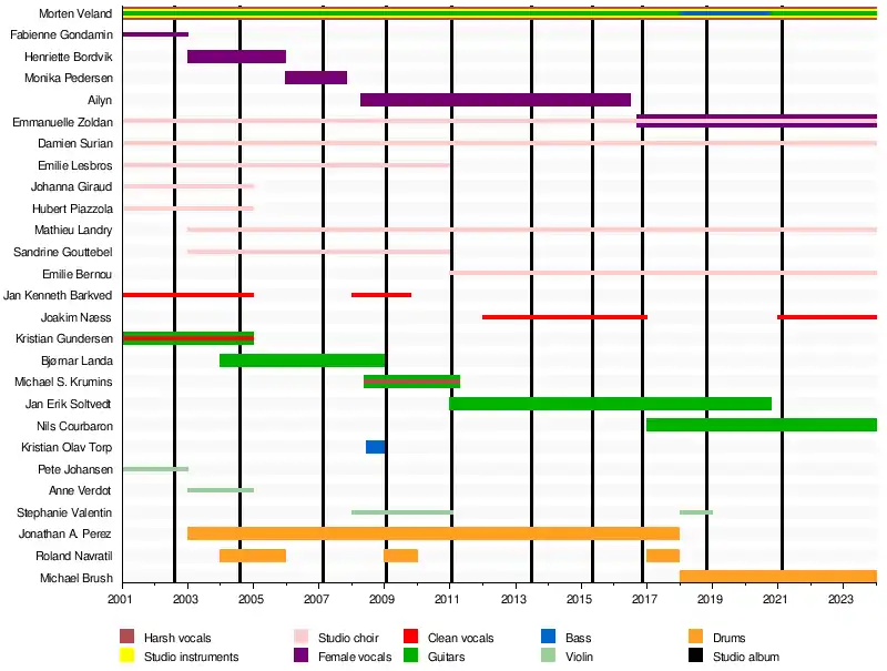 • Jan Kenneth Barkved – clean vocals (2001–2002, 2008; died 2009)