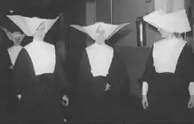 "In antebellum America religious communities of women often absorbed the brunt of anti-Catholic prejudice. Religious orders of women, who lived and worked in a peculiar all female community, created and maintained schools, orphanages and hospitals. They also wore strange and distinctive clothing and became the object of Protestant derision. American sisters had to cope with gender, religious and ethnic bigotry while working in a patriarchal society that limited any power they might have. Rumors of evil practices and women held in convents against their will were circulated. Protestant ministers preached from their pulpit against Catholics and particularly against nuns. Sisters were often insulted or pelted in the street. Protestants, especially males, may have felt more threatened by the nuns as they perceived them to be in the process of "feminizing" the Catholic Church and usurping power. Historically, caring for the sick was perceived to be a "religious calling" not a profession. As Catholic women’s religious orders began healthcare work in antebellum America, the role of women in nursing and hospital administration was gaining recognition as a profession and women were becoming empowered to take on non-traditional roles."[3]