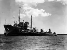 Inside, the hull was divided into eight watertight compartments protected by a continuous double bottom. The ice belt consisted of 1 inch (25 mm) thick shell plating and transverse frames every 400 to 450 millimetres (16 to 18 in). The main and auxiliary engine rooms were located amidships below the main deck with the propulsion motors in their own watertight compartments. The remaining space was taken up by tanks for fuel and lubricating oil, fresh water and ballast.[18] While Sisu was designed to operate with a crew of 51 during the winter season, she could accommodate more than 100 persons during the summer season when the vessel operated as a submarine tender.[1] Like the other Finnish icebreakers, Sisu was fitted with a towing winch and a notch where the bow of the escorted ship could be pulled.[18]
