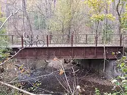 Again, local citizens revived the railroad, this time as the Skaneateles Short Line Railroad. The new company was incorporated on October 15, 1940, and began operations on April 17, 1941.[3] The company dieselized in 1950, acquiring a GE 44-ton switcher.[5] The closure of a mill in Skaneateles in 1969 led the railroad to abandon the track between the village and Skaneateles Falls, a distance of 3 miles (4.8 km). This left the Stauffer Chemical Company as the railroad's sole customer.[5] In 1974 Stauffer acquired the railroad.[3] The railroad discontinued operations on July 15, 1981, and was later abandoned.[6] Portions of the former right-of-way are part of the Charlie Major Nature Trail.[7]