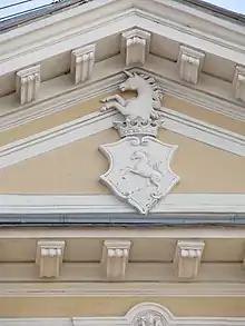 Skarzhinsky Coat of Arms on the mansion of Viktor Viktorovich Skarzhinsky in Saint Petersburg, Russia.