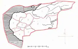 Map of the municipality in 1960 with its nine subdivisions: 1) Langstein, 2) Vassbygda, 3) Vold, 4) Mæhre, 5) Forbord, 6) Alstad, 7) Drægset, 8) Auran, and 9) Vinge