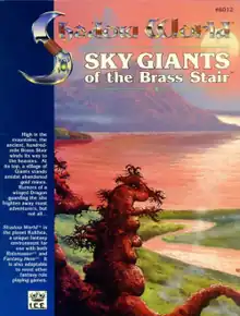 I.C.E. published the role-playing game system Rolemaster in 1980, and immediately introduced the Shadow World campaign setting the same year. In the mid-1980s, I.C.E. took over Hero Games and their Hero System of role-playing rules, including the specialized set of rules for fantasy campaigns called Fantasy Hero. The supplement Sky Giants of the Brass Stair is a 72-page book softcover book that was published by I.C.E. in 1990 using both the Rolemaster and Fantasy Hero rules systems. It was written by Tom Kane, with interior art by Jennell Jaquays[lower-alpha 1], cartography by Elissa Martin, and cover art by Tony Roberts.[1]
