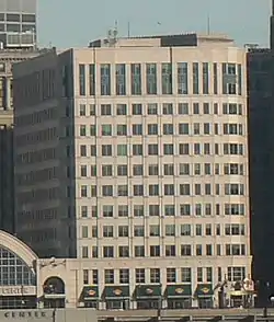 The Skylight Office Tower is a 1991-built 12 story 165 foot high-rise office building on the property of Tower City Center in downtown Cleveland, Ohio.[2] Like its closely resembled (though not perfect matching) sister building (Chase Financial Plaza) across the under street level concourse in Tower City's The Avenue, Skylight is postmodern in design and rests on a concrete slab that was left over from an unbuilt office tower in the 1930s that extends underneath the foundations of both the towers.[3] The Skylight contains 321, 0000 square feet of office space and is known for its ornate grand lobby that features imported Italian granite, black marble, and mahogany detailing.[4] The Skylight was constructed by RTKL, just like its sister building and was built at a time when Forest City Enterprises of Cleveland sought to increase the floor space and leasing opportunities for their considerable holdings in downtown.[5]