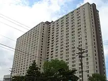 Skyline Tower is a large low-income high rise apartment complex in Saint Paul, Minnesota, United States. The building is also often called St. Anthony Tower, or 1247 St. Anthony. At 240 feet (73 m) it is the largest single HUD-subsidized building in Minnesota,[5] and the 22nd-tallest building in Saint Paul.[2] With over 500 units it is the largest single-building subsidized housing complex in the U.S. west of Chicago.[6][7] The building is run by CommonBond Communities, the largest developer or owner of affordable rental housing in Minnesota. The nonprofit bought the building in 2000 with the help of U.S. Bank.[8] The building was previously owned by Skyline Towers Co and managed by Sentinel Management Co.[1]