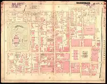 While the biggest slave market in the state was along the Mississippi River in Memphis, land routes connecting Nashville to the ports at New Orleans, Louisiana, and Natchez, Mississippi, sufficed to deliver human cargo to and from Nashville.[1][2] By 1850, slaves were a major export of the U.S. state of Tennessee, and Nashville served that market with no fewer than eight slave-trade brokers.[3] These brokers sold slaves at multiple locations in the city, albeit generally in proximity to Cedar Street.
