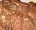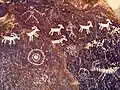 The Sloan Canyon Petroglyph Site is a National Register-listed property located within the Sloan Canyon National Conservation Area, which is a 48,438 acre conservation area in the eastern part of Sloan. It contains more than 1,700 individual design elements that dates back to Archaic times. It also contains geological features such as volcanic rock peaks.[2]