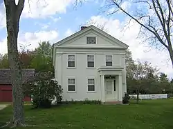 Passing through the entrance leads to the stairhall, with the on the right stairs side and a doorway leading to the parlor on the left. The back of the stairwell leads to another room that connects to a side-room on the left and into the kitchen. The kitchen features access to the other rooms, a back entrance, a back stairway and a separate kitchen pantry in the rear wing. The interior is designed with the lines and moldings of the Greek Revival styling. The fireplace has a simple projecting mantel, and the walls are plain with plastered walls and cornice moldings. In adherence to fire code standards, the rear chimney was rebuilt, yet "accurately reproduces the large bake oven."[1] The second floor is similar to the first floor except the rear rooms have been converted to bedrooms. Cleary believes that the boards used to finish the attic stairway and part of the attic may come from the replaced ell, which possibly was from a previous house on the site.[1]