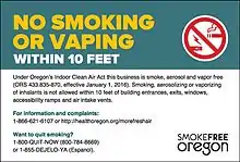 - ↑ Kellner, Angela (January 2, 2014). "New Oregon Law Makes It A Crime To Smoke In Vehicle With Minors". KLCC. Retrieved January 7, 2022.