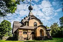 In Talashkino, Mariya Tenisheva opened in the end of the 19th century an artisan center, where local people were employed. Most of the buildings of the estate have been lost. Those which survived, including the Church of the Holy Spirit and the fairy-tale reconstruction by Sergey Malyutin, currently host a museum.[16]