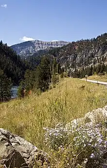 The Snake River Canyon (also known as the Grand Canyon) is formed by the Snake River in western Wyoming, United States, south of Jackson Hole.[2]