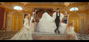 The music video is produced by SL8 Visual Lab and it was directed by 725.[11] The music video opens with Yeji wearing an extravagant gown walking in a hallway with framed pictures of purple sneakers. The next scene shows the quintet decked out in jewels, dancing and singing in a luxurious palace with a grand surrounding of thrones, statues, chandeliers and most notably a structure of a sneaker made using marble. The scene shifts to a military control center where they are assuming command. Later in the clip, the girl group showcase their fierce choreography on an outer space sneaker store. And in signature Itzy fashion, the music video ends with the group strutting their iconic "crown" pose. Writer Gladys Yeo from NME described the music video as "playful".[12]