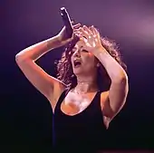 Lorde debuted "Sober" at a "tiny pre-Coachella gig" to a crowd of 240 at Pappy & Harriet's on 15 April 2017. Tickets sold out in minutes.[22] Eve Barlow from Billboard praised the performance, saying that it was "heartwarming to watch Lorde engage with such easy confidence" on stage, noting her growth in her level of comfort with the crowd.[23] She also performed the song at the Governors Ball on 2 June 2017. During the performance, a tilted box was used, pointing downward. At the end, the box opens and Lorde falls into the arms of her dancers. NME called the performance "simple, but delivered with so much poise and finesse, you can't help but be impressed."[24] Lorde performed "Sober", with five other songs, as part of a re-imagined Vevo series at the Electric Lady Studios where she recorded most of her album,[25] and was part of the set list for her Melodrama World Tour (2017–18) and Solar Power Tour (2022–23).[26][27]