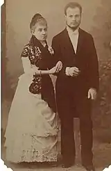 After the wedding, the couple spent their honeymoon in Portugal. Later, they initially moved to Lutosławski's family estate in Drozdowo, where they were very pompously greeted by Casanova's in-laws. Initially, she communicated with her husband and his family only in French; it was only gradually that she was picking up more and more Polish.[28] According to many accounts, she soon won the hearts and minds of all the Lutosławski family with her natural, cheerful, open and unassuming personality.[29] Following a brief spell in Switzerland, where Lutosławski obtained his PhD title, they spent the next few years shuttling across Russia, as Lutosławski was either employed or was seeking employment in universities of Dorpat, Helsinki, Moscow and Kazan. They returned to Drozdowo in 1895 and lived there intermittently until 1899. By that time, they had already four children, all of them daughters: María, Izabela, Yadwiga and Halina, born between 1888 and 1897.[30] Yadwiga died of dysentery in 1895, plunging Casanova into a severe depression.[7] The couple and their family traveled to Galicia every summer, which allowed Casanova to maintain a direct relationship with her homeland. Absorbed by family duties Casanova has almost ceased to write; her only literary attempt of the time is a set of short stories based on her own experiences in what was still an exotic country to her, El doctor Wolski: páginas de Polonia y Rusia, published in Madrid in 1894. The volume was translated into Polish and went to print as Doktór Wolski: (Kartki z życia Polaków i Rosyan) in 1907.