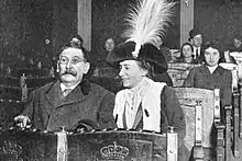 In 1917, she witnessed the February Revolution, which she again shared in her writings.[42] Initially she tended to demonstrate some sympathy for radicalised soldiers and workers, underlying what she viewed as their sufferings and peaceful spirit.[43] During the popular uprising of 3 July, harshly suppressed by government troops, Casanova received an accidental blow in the eyes from one of those fleeing the street shooting. The consequences of this accident were disastrous for the writer, because in spite of the care she received she would never again be able to see well. In spite of everything, she did not stop writing.[7] She was eyewitness to the Bolshevik coup of October 1917, which she reported in detail. Shortly afterwards she visited impromptu the Smolny Palace and managed to interview Trotsky.[44] Casanova still nurtured some illusions about the Russian revolution, yet the tone of her correspondence started to change, especially after two half-brothers of her husband had been executed by the Bolsheviks. In September 1918 Casanova and the Lutosławski family managed to leave St. Petersburg, crossed the Soviet-German demarcation line and returned to Warsaw.[45] Later, she would describe the Bolshevik revolution as triumph of barbaric hordes, heavily aided by Jewish conspiracy.[46]