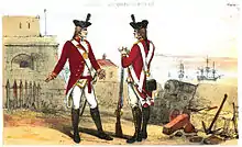 - ↑ Strachan, Huw (1975). British Military Uniforms 1768–1796: The Dress of the British Army from Official Sources. Arms and Armour Press. p. 300.