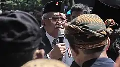 After his gubernatorial career, Solihin briefly retired into a rural agricultural estate,[11] until he was appointed as Presidential Secretary for Development Operations Control in 1977.[12] He served in this capacity until 1993, and then joined the Supreme Advisory Council and became a president commissioner at a joint venture firm between two state-owned companies.[13] He joined PDI-P shortly after the fall of Suharto, and became a member of the People's Consultative Assembly (MPR) as a regional delegate, but left PDI-P due to disagreements regarding amendments to the Constitution of Indonesia.[14] As a MPR member, he also opposed the formation of a special commission to audit the personal wealth of government officials, claiming that the body would be ineffective and a waste of funds. The commission itself reported Solihin to the police due to his refusal to submit an assessment of his personal assets.[15] Between 2000 and 2004, Solihin also campaigned against a normalization project of the Ci Tanduy river bank, along with later minister Susi Pudjiastuti.[16][17]